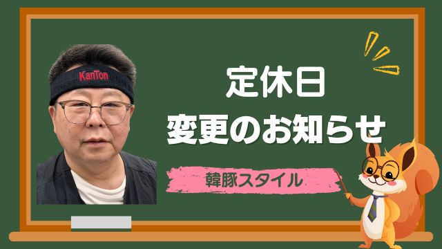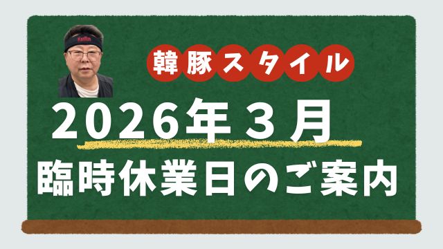 臨時休業のお知らせ 韓豚スタイルでは、2